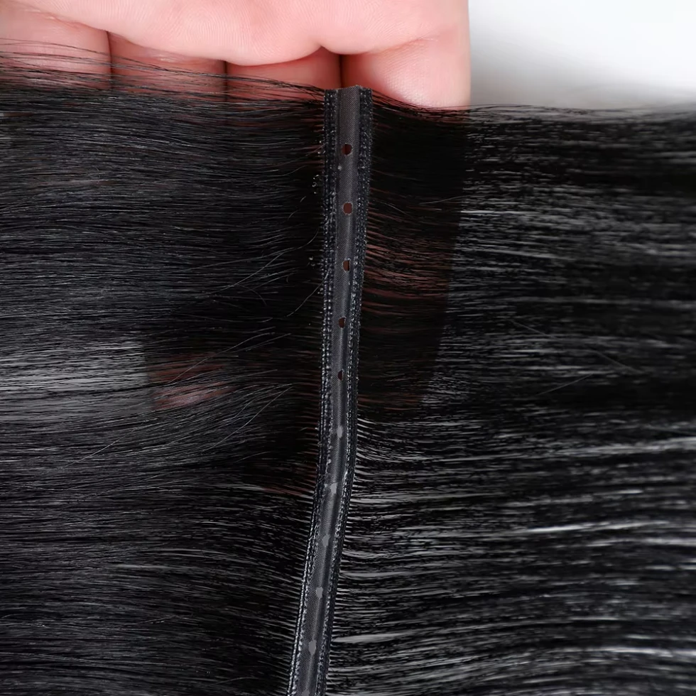 Installation facile pour tous les niveaux de compétence: Aucune formation avancée requise ! Les trous préfabriqués en PU vous permettent de sécuriser les trames avec des perles ou une technique de couture hybride, les rendant accessibles aussi bien aux nouveaux stylistes qu'aux professionnels chevronnés.