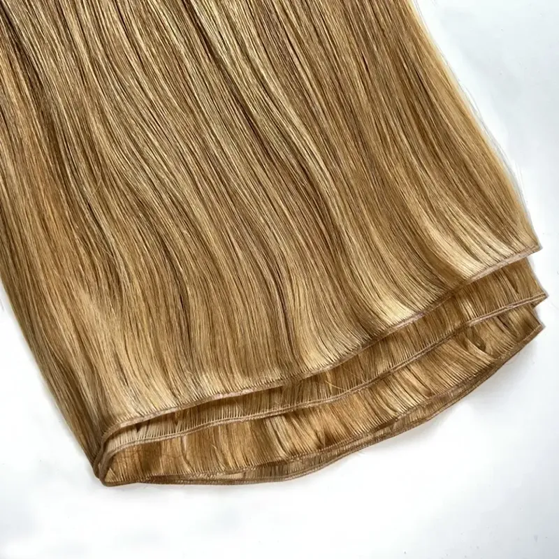 Nos extensions de cheveux Genius Weft sont le produit hybride parfait, combinant l'élégance des extensions à trame plate avec la douceur des extensions à trame nouées à la main.