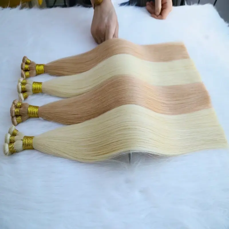 Les extensions de cheveux attachées à la main sont entièrement fabriquées à la main, des mèches de cheveux individuelles étant tissées ensemble par des artisans qualifiés. Cela crée la trame la plus fine et la plus transparente que vous puissiez obtenir, ce qui les rend parfaits pour les clients aux cheveux fins ou fins. Grâce au tissage fait main, les trames reposent à plat contre le cuir chevelu, offrant un fini naturel et indétectable.