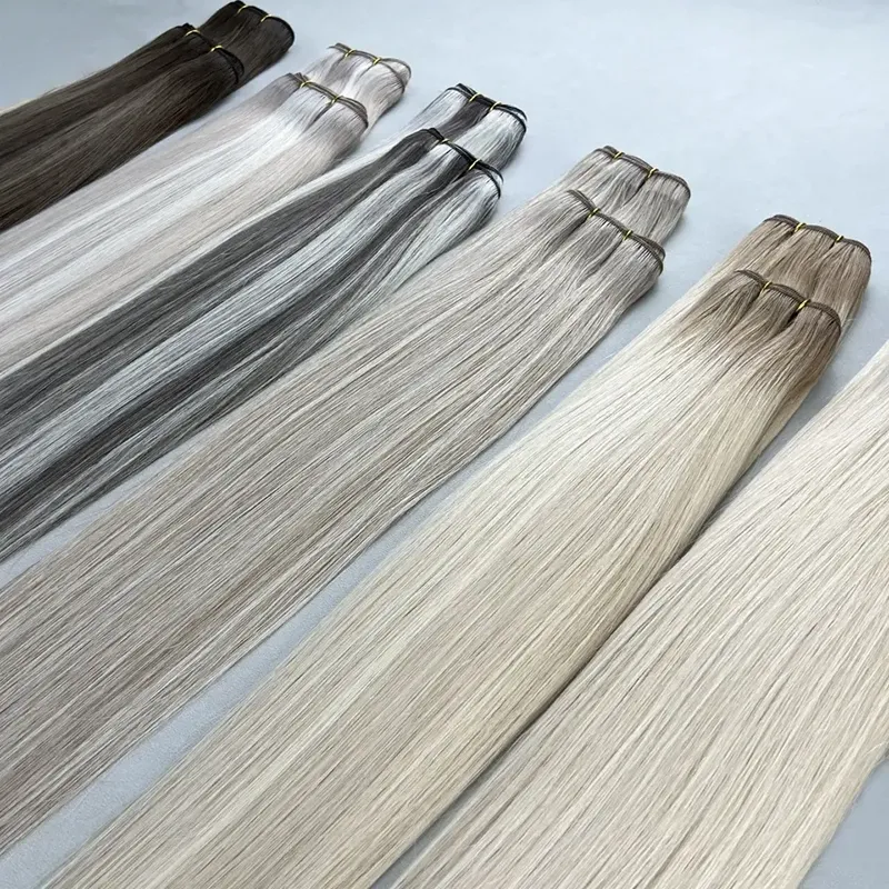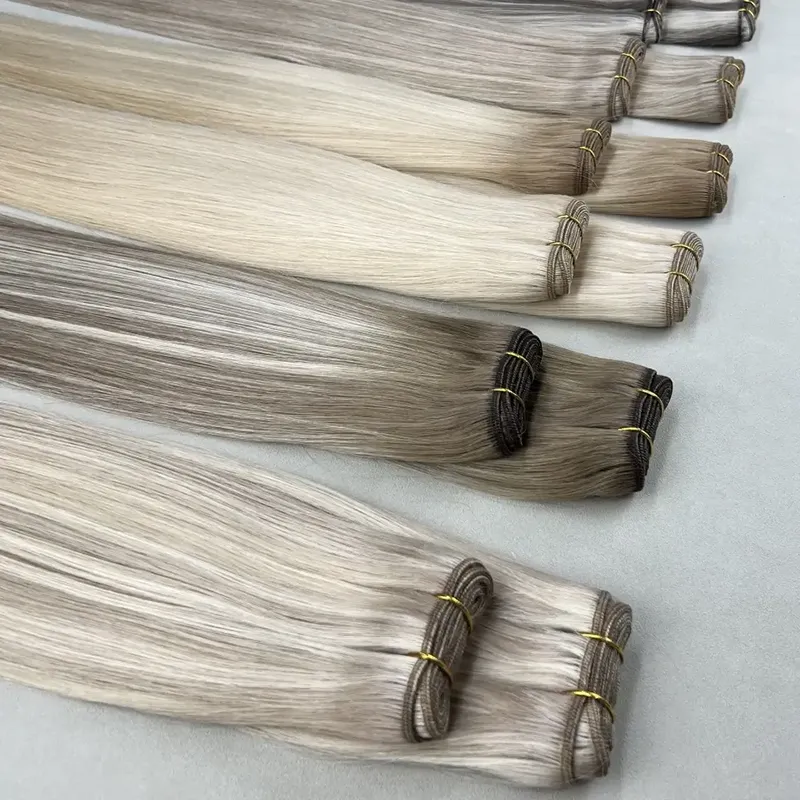 Lum Hair est un fournisseur et fabricant professionnel de trames de cheveux humains en Chine depuis plus de 23 ans. Notre usine est le premier patch impliqué dans l’industrie de production d’extensions de cheveux humains. Ils sont fabriqués à l'aide d'une machine multi-têtes, ils sont étroitement tissés dans une couture, semblable au processus d'une machine à coudre. Pour que la machine crée une seule rangée de cheveux, il doit y avoir une quantité suffisante de cheveux. Grâce à ces caractéristiques, les trames de cheveux fabriquées à la machine sont connues pour leur durabilité et leur densité.