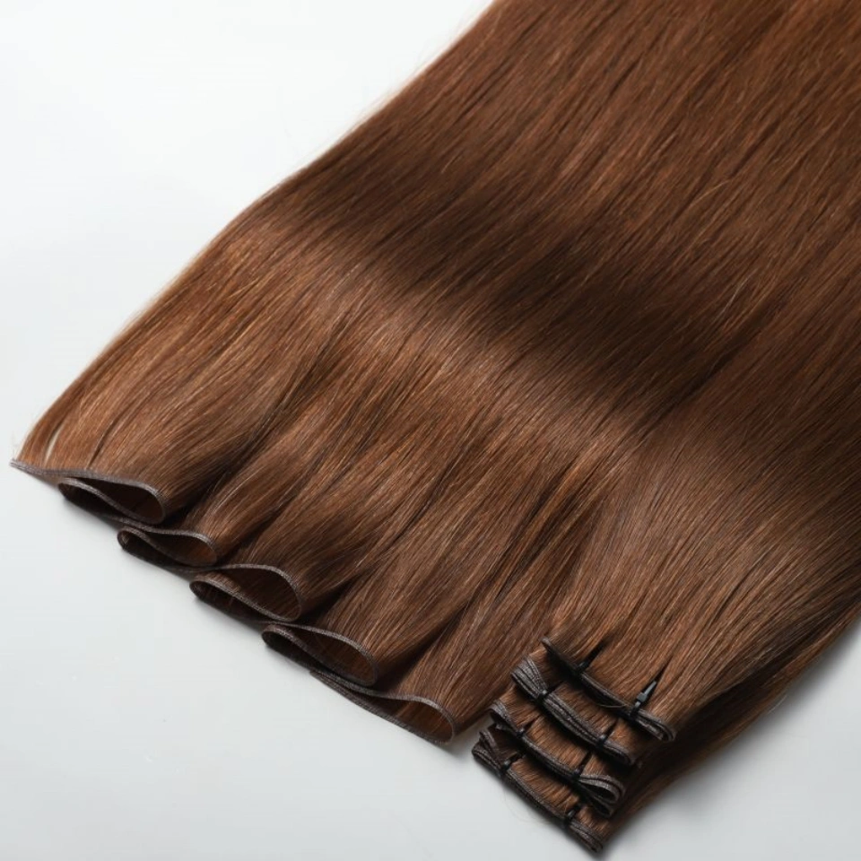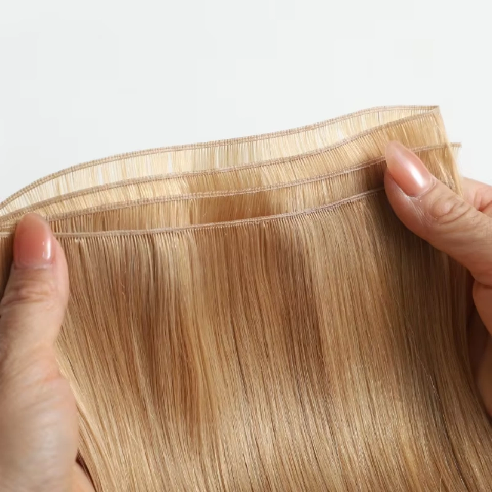 Le chemin de trame est incroyablement plat, mesurant seulement 2 mm de large, ce qui rend ce modèle idéal pour les types de cheveux fins à moyens par rapport aux trames fabriquées à la machine. Choisissez-nous comme fournisseur d'extensions de cheveux et profitez de la liberté de personnaliser chaque style d'extension de cheveux.